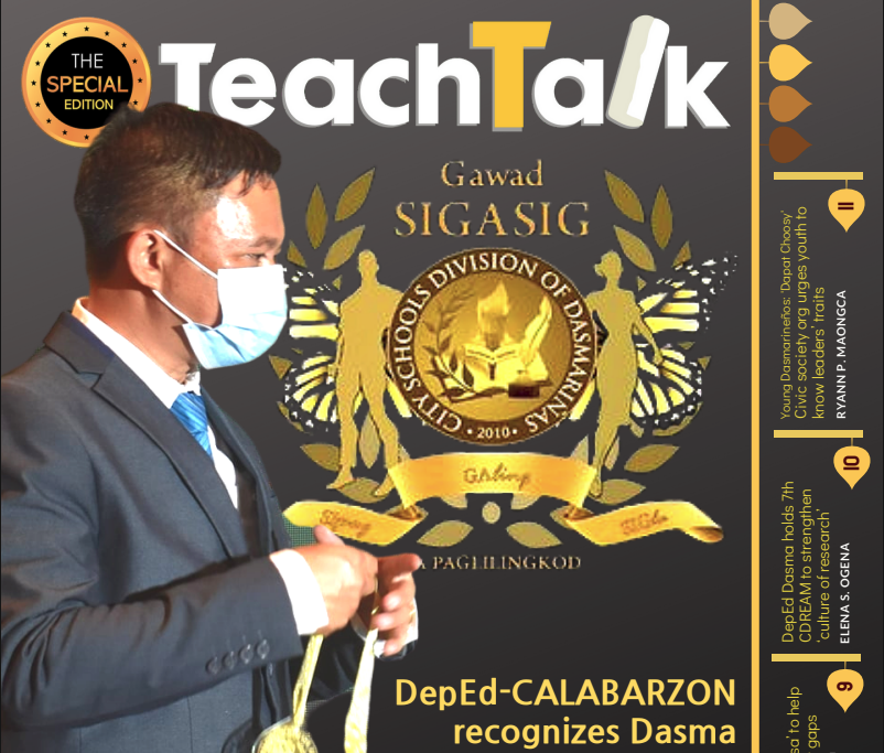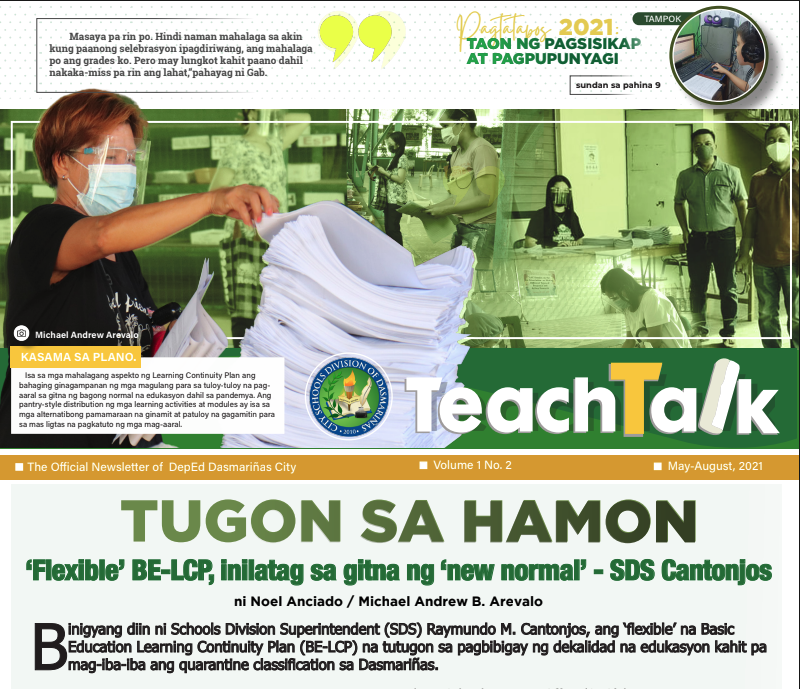 TEACHTALK: The Official Online Publication of the City Schools Division Office (CSDO) Dasmarinas Volume 1 Issue 2, May to August 2021 Do you have worthy educational articles in your school or community to share? Bring out and awaken the writer within yourself. Come and be part of TeachTalk, the official newsletter of the DepEd Dasmariñas. continue reading : RELEASE OF TEACHTALK Volume 1 Issue 2, May to August 2021RELEASE OF