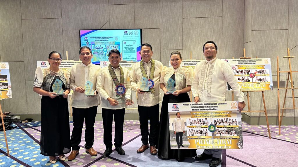 The Civil Service Commission Regional Office IV-A. as part of its 50th anniversary milestone celebration, recognized DepEd Dasmariñas as one of the agencies that have attained Maturity Level I| (Bronze Awardee) under the Program to Institutionalize Meritocracy and Excellence in Human Resource Management (PRIME-HRM) or a process-defined HR system (Accreditation Status) during the Regional Awarding and Recognition Rites on January 28, 2025, 2:00 P.M. at Luxent Hotel, 51 Timog Ave., Quezon City. The highly anticipated status award was received by OIC-SDS Elias Alicaya Jr., ASDS Galileo Go, Leylanie V. Adao, EPS-LR, Maricel Mendoza, HRMO, Renante Salimbao, SEPS-HRD, and Noel Anciado, EPS-English, on behalf of over 100 Division Office personnel who collectively worked to attain this milestone. All of these and more milestones to come for the benefit of over 4,000 teaching and nonteaching personnel, and of over 120,000 learners. Congratulations, DepEd Dasma!